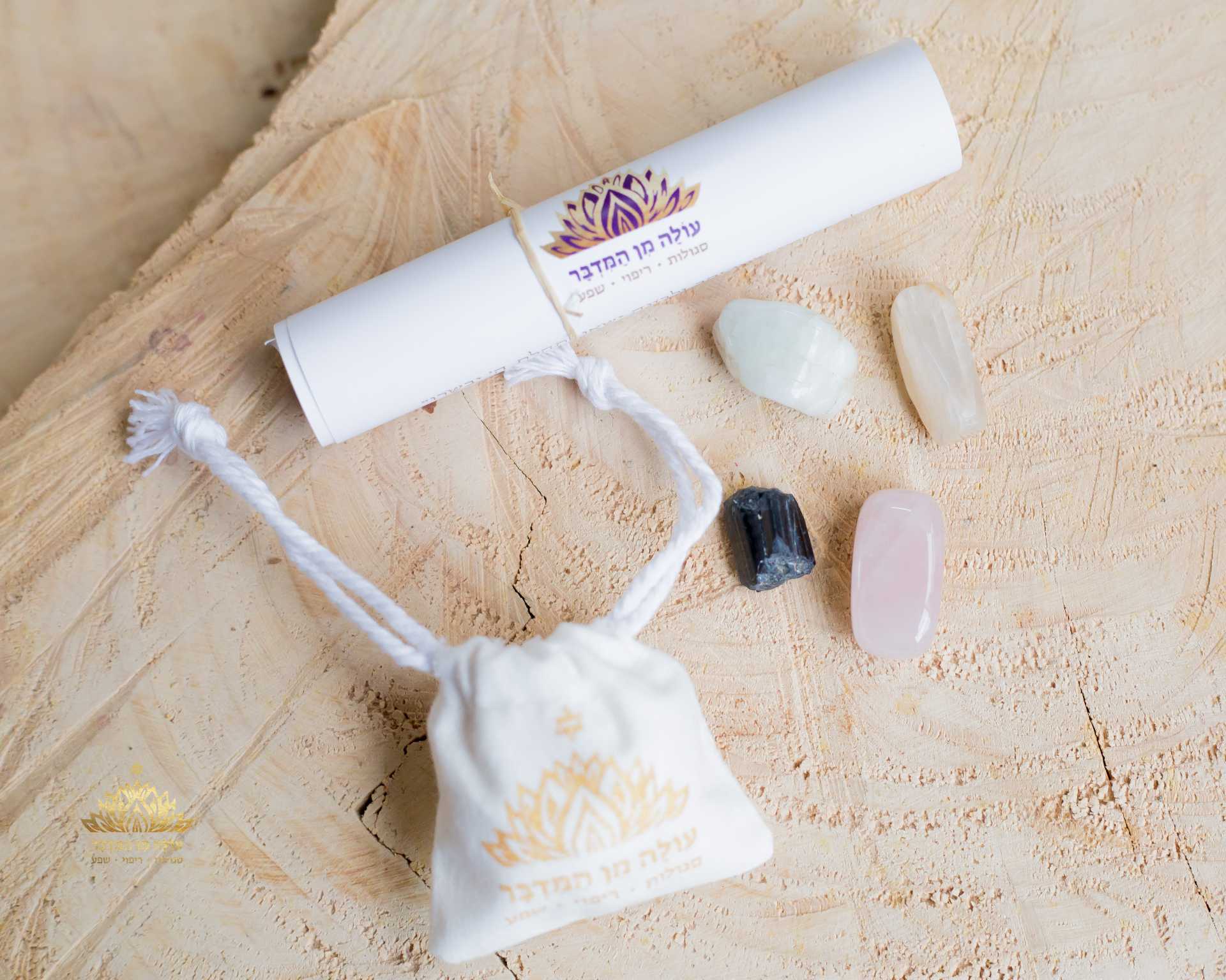 - ערכת האבנים ארוזה בשקית כותנה ובקופסה קטנה.