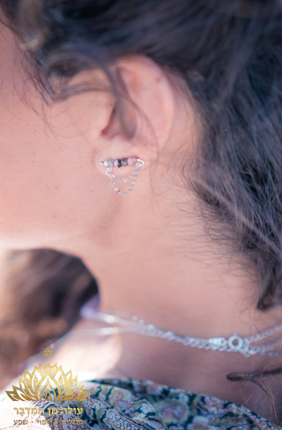 - סגנון העגיל: “מטפס” בשילוב שרשראות