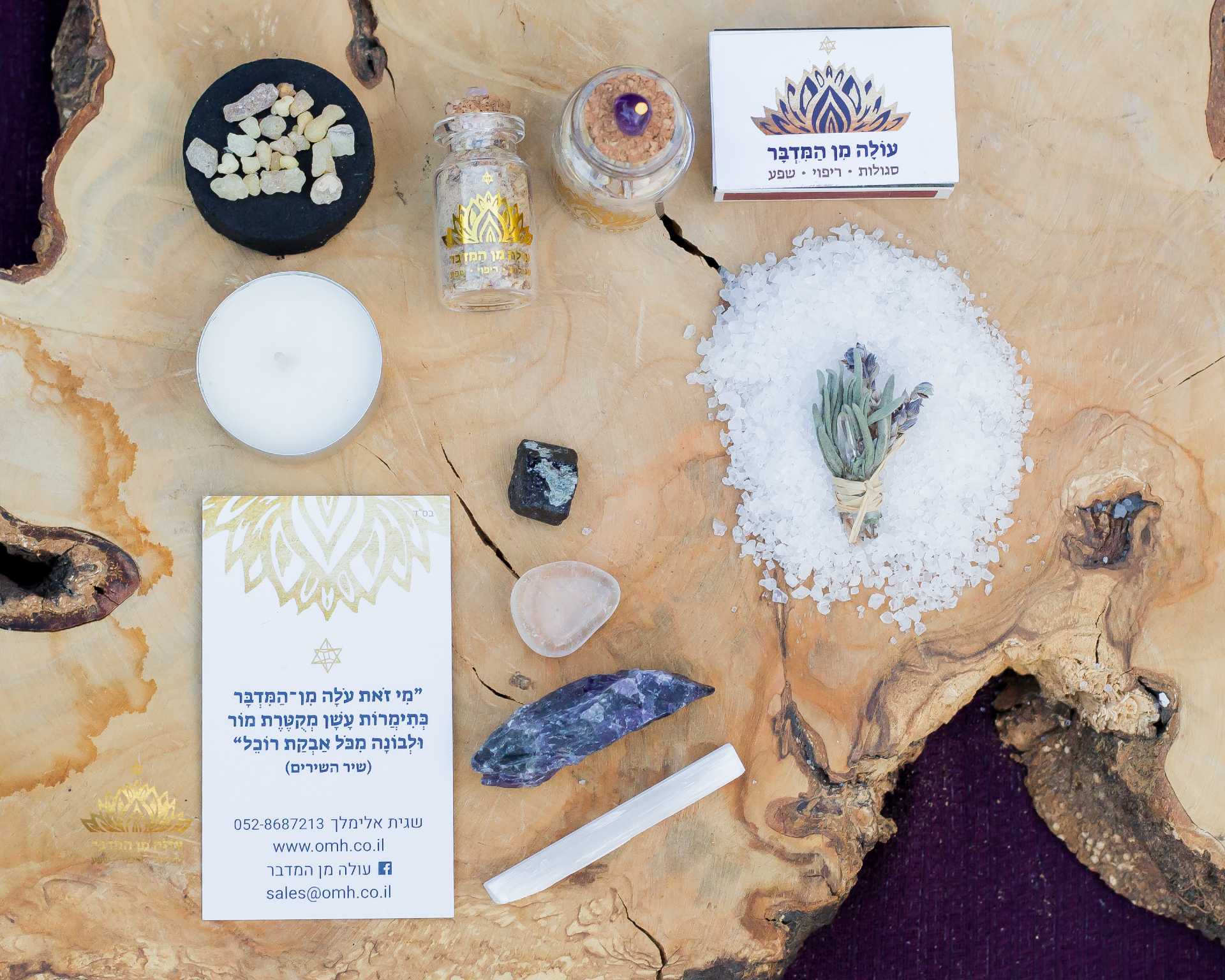 ◊ הערכה כוללת קטורת לבונה, קטורת מור ולבונה, ברכת המטפל, קריסטלים מותאמים, סגולה להגנה ושמירה, נר, גחלים וגפרורים.