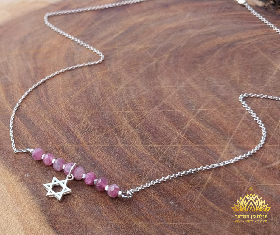 מחפשת תכשיט עם משמעות עמוקה? שרשרת זו משלבת כסף 925 איכותי יחד עם אבני טורמלין ורוד ותליון מגן דוד ייחודי.